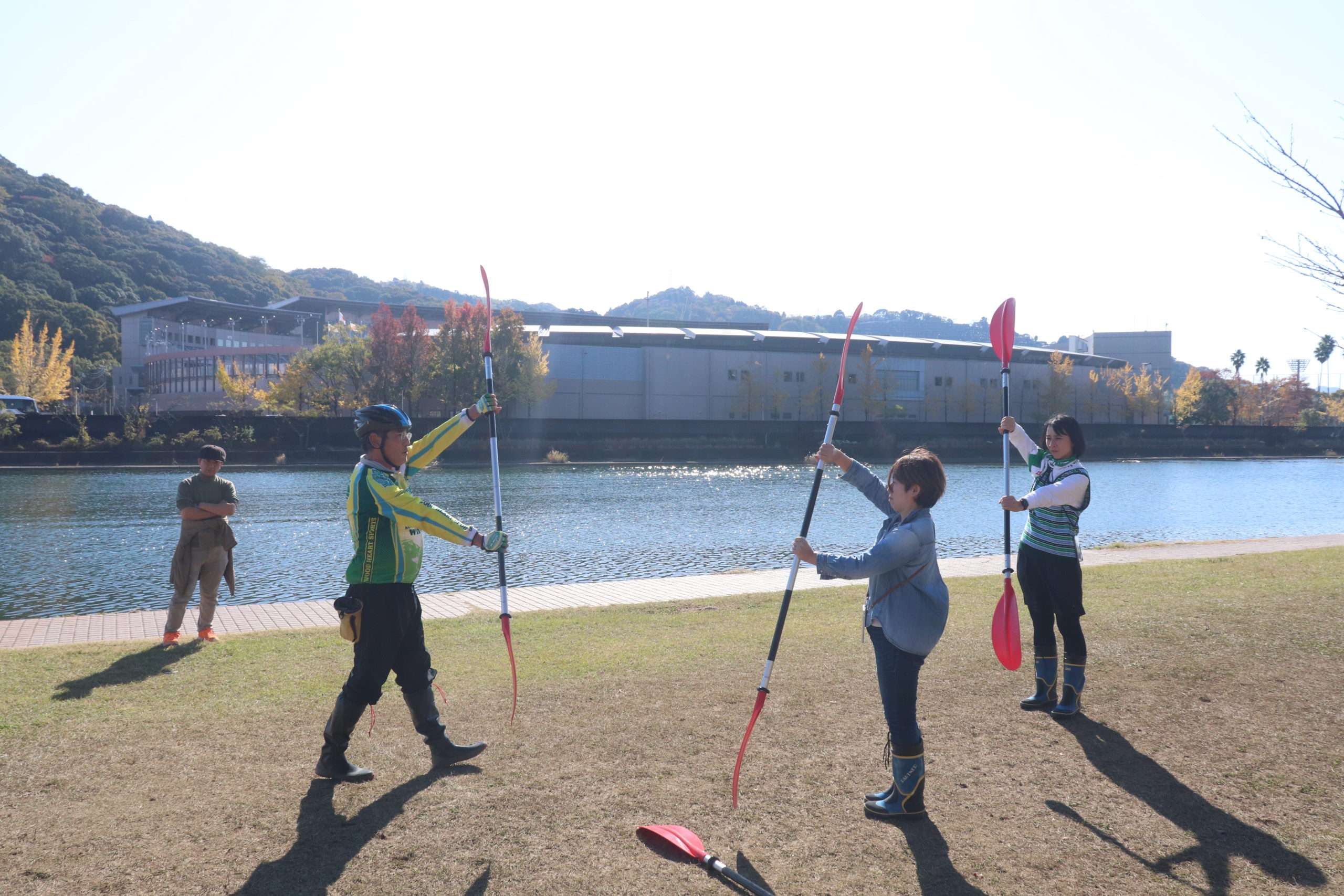 We’ll paddle to areas near Tenjin Ohashi Bridge and Shioe Bridge, depending on the participants’ stamina. If it’s high tide, you’ll have the chance to see the remains of the submersible bridge upstream.
